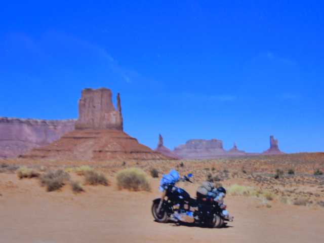 凸凹のダートで、ハーレーで走行すると疲れます。