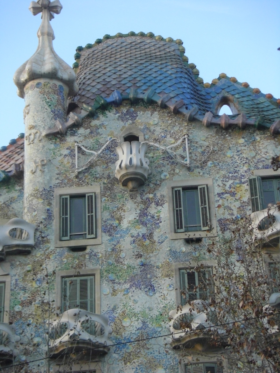 ガウディ設計の住宅(マンション)のひとつ。外観は、1、2階は柱が特徴的ですが、3階以上はテラスがすてき。すこしくどいような曲線が多く使われていますが、いちどなれると美しさを実感します。いかにもガウディらしい建物です。間口はそれほどひろくないこじんまりとした建物です。バルセロナのメインストリ−トであるグラシア通りに面しています。一度見てください。