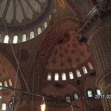 イスタンブールに行ったら必ず見たいですね。多数のステンドグラス、タイルがとてもきれいです。陽が差し込んで輝いてすてきでした。ガイドブック等にはスカーフが必要とありましたが、靴は脱ぎますがスカーフは被らなくても良かったです。