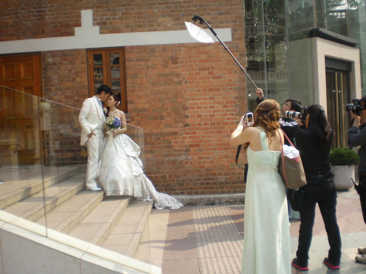 とにかく、正面でパチリ、階段でパチリ、と幾組ものカップルが写真に撮られています。