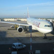 建物の滑走路側は全面ガラス張りで明るく開放感があります