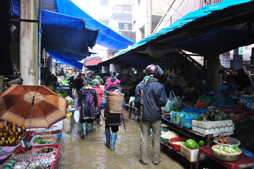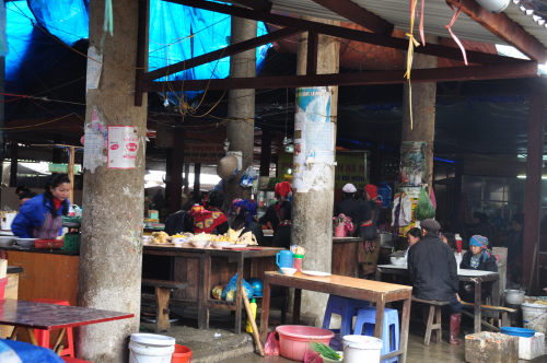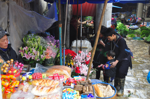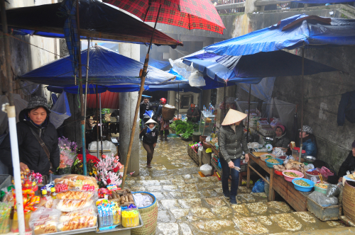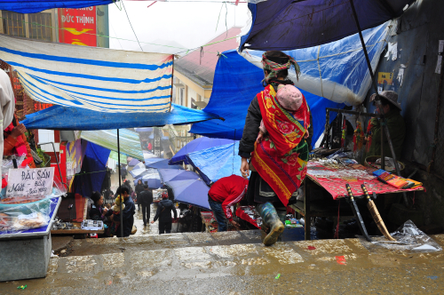 地元の人と観光客で混雑する。商品は多種多様で中央付近には市場もあり、食堂や雑貨・食品など生活用品の品揃えが豊富。商品には値札はなく、売り手と買い手の交渉で値段が決まる。サパという土地柄か山歩きの用品も多数並び、お土産屋さんもある。週末は一番賑わう、近隣の少数民族の集落からの商品を搬入する人や買い物客の民俗衣装が目立つ。