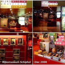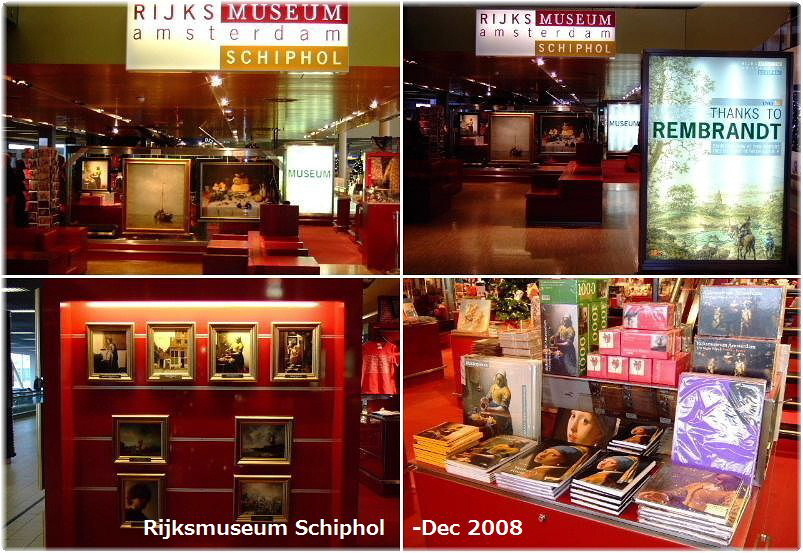 写真は、空港内とアムステルダム国立美術館スキポール分館の様子等。