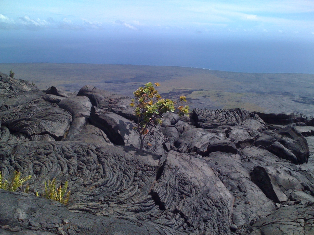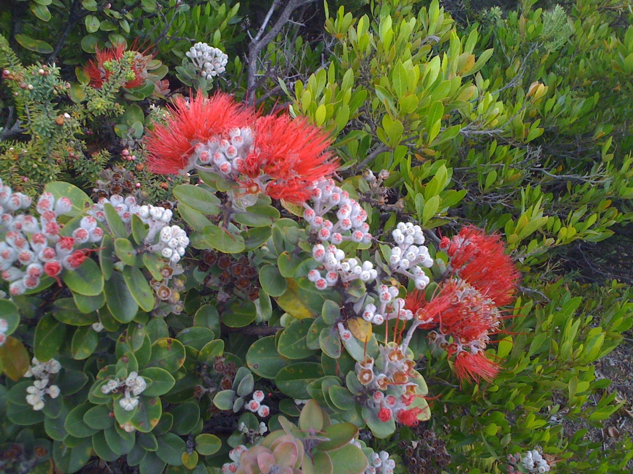 南部の海岸線と溶岩台地の対比は見応えがあり、その過酷な条件の中で自生するオヒア・レフアの真っ赤な花が訪れる人を魅了します。