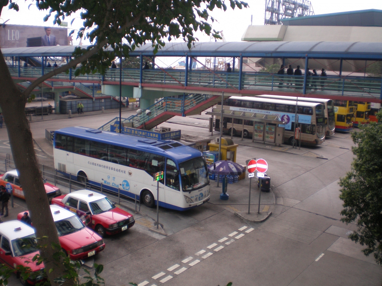 MTR 湾仔駅から行く場合は、ハーバーへ向かう連絡歩道橋を進み、会議展覧中心入り口手前で右折します。スターフェリー乗り場の方へ向かうとバスターミナルが見えてきます。