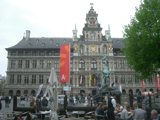 ヨーロッパの都市は、市庁舎を中心に街が広がっています。市庁舎のまん前の広場がマルクト広場。アントワープでは、グロート・マルクトとよばれています。周囲にはレストランがたくさんあり、日長みんなが座ってのんびりとビールを飲んでいます。いいですね。