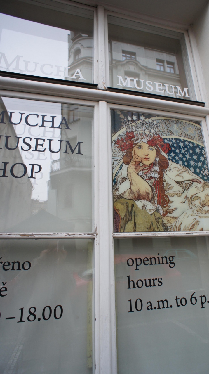 他の展示品などを見ていて二十数年前によく開かれていたミュシャの展示会を思い出しました。ここと同じような内容の展示会で出口の外が版画の展示即売会でたくさんのテーブルと係員がいて、数十万の美術的にはあまり価値の無い複製版画をローンを組ませて若い人に売っていました。その展示会は無料で各地を巡回していました。それを思い出したからかもしれませんが・・・。そちらの方が愛用のカメラとか宝飾品など展示品も多かったような気もします。ミュージアム・ショップもガッカリ。絵葉書3枚しか買えませんでした。ここでしか買えないような物は見当たりませんでした。ここに費やした数時間でキュビズムの建築を幾つか見て廻ればよかったと後悔しています。