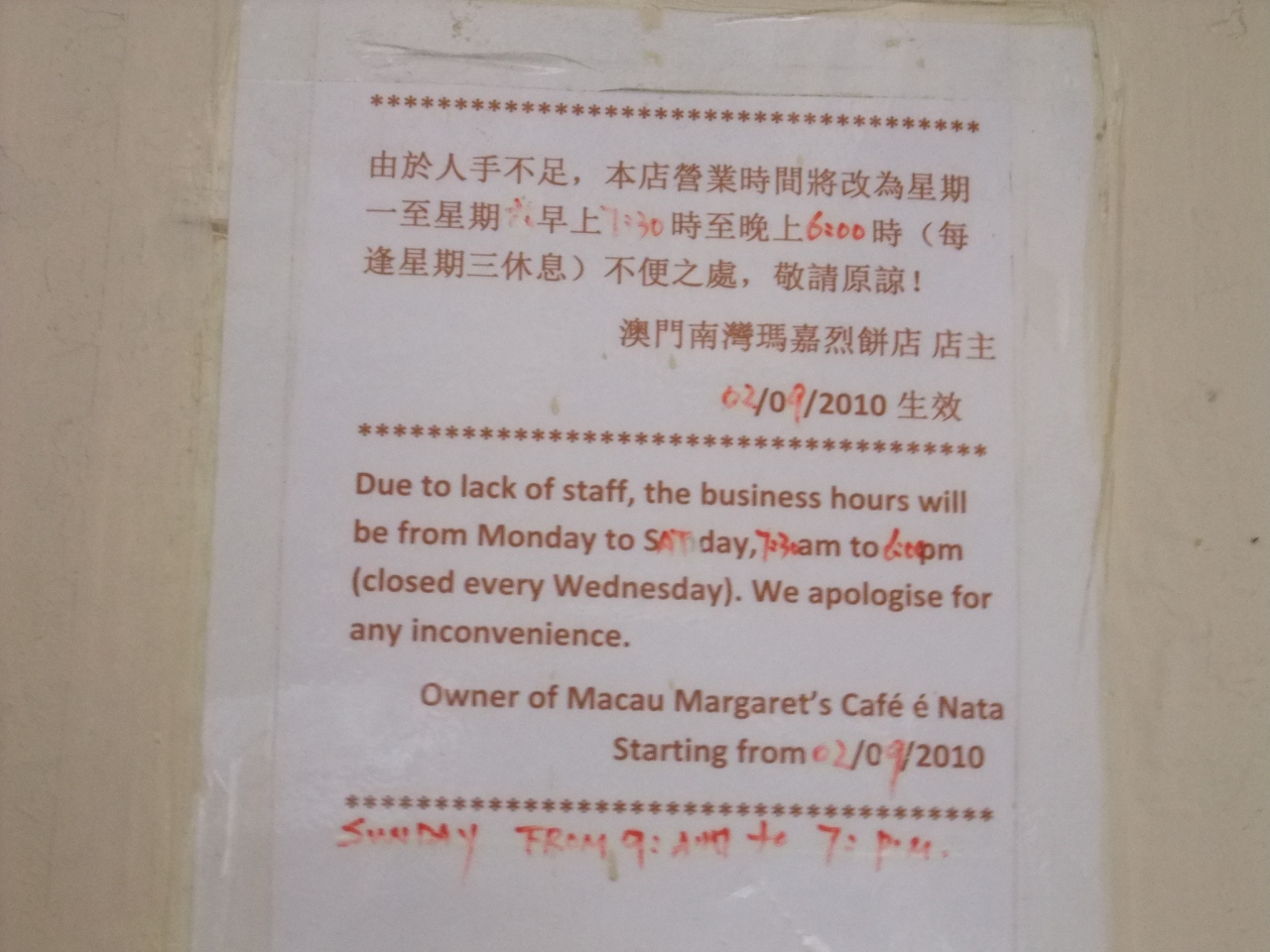 営業時間は、7時半~18時です。マーガレット カフェナタにて