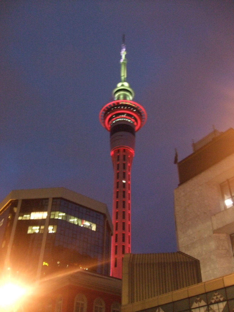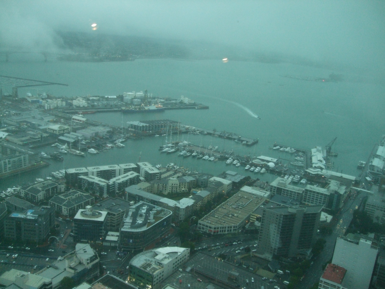 我々が滞在した3日間のうち、二日間が雨、結局雨の日にスカイタワーに行くことになった。展望台の位置が高いので、霧がかかり何も見えない状態。霧が時々切れたところに町並みにが僅かに顔を出す程度・・・、残念でした。晴れていれば本当によい眺めを見ることができると思います。