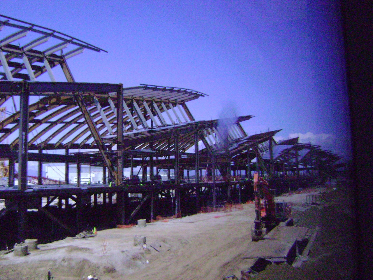 トム・ブラッドリィ・インターナショナル・ターミナル@LAX 通称TBITが 38ヶ月、800億USDをかけて 新築中なのです。それも 今使っているTBITに並ぶようにして建物を作っているので 国際空港のターミナルを使う人ならば その大きな窓からすべてを見渡す事が出来ます。2週間ほどまえLAX経由でNRTに行ったのですが その時は赤茶色に見える鉄筋だけでした、今は 周りを覆って 建物らしくなっている模様、、本当に巨大で圧倒されますゆえ、、是非是非w なおこの建築に当たった人々やこれから雇う人々の総計は4万人以上で 800億USDも 市の計算によると充分 ペイされると言うことでする!すごいですね。ついでに トム・ブラッドリィさんは 1970年代当時は大変に珍しかったアフロアメリカン;黒人の市長さんの名前で 20年にわたって アンジェリーノに愛された人らしいです。LAっぽいですよね♪