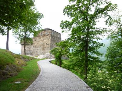 本当に山の斜面に建っているので、ベリンツォーナ駅から徒歩はかなり不可能です。