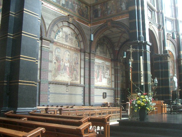 アムステルダム中央駅を正面(南)に出たとき、左側に見える教会。ローマン・カトリックの教会で、プロテスタントのオランダでは異色です。聖ニコラスは船乗りをまもる神様で、オランダ船の海外遠征時の繁栄を思い出させます。