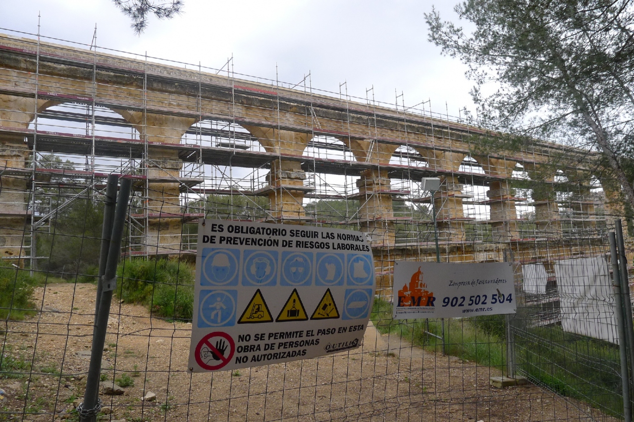 2011年4月にラス・ファレラス水道橋(悪魔の橋)に行きましたが、2009年5月頃から行っている修復工事がまだ終わっていませんでした。