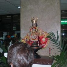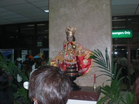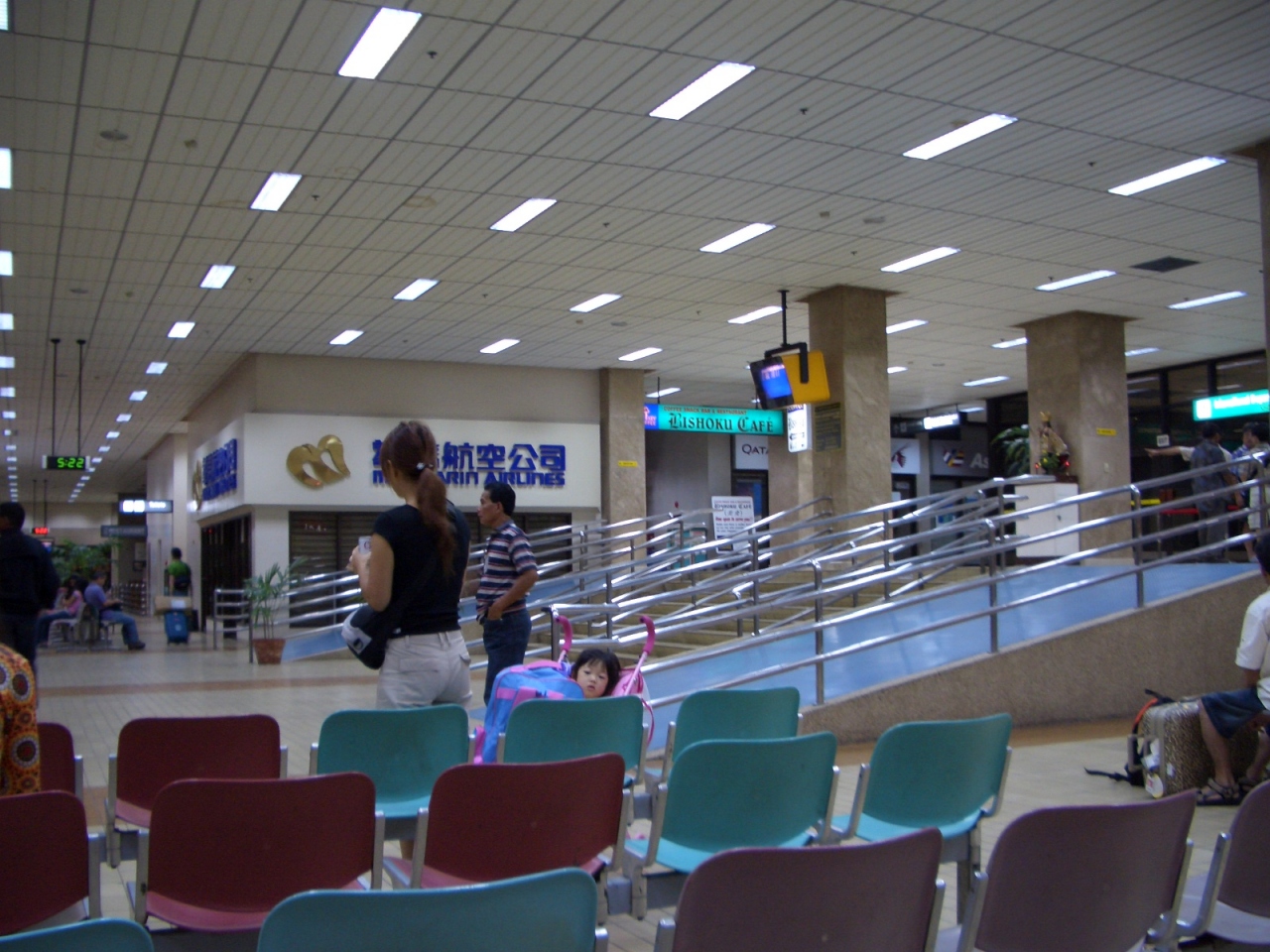 最初のゲートは国際線 国内線 似たような 感じです 間違えないように 入る前にどちらにも サントニーニョがいるので ちゃんと無事を祈って 中に入りましょう 直行便の帰国便は 朝が早いっす ゲートが開くのが 朝の6時からなので その前に来ても 待合室で待たされますよ 中に入ると待合室は 国際線はちょっと寂しいかな そば・うどんが食べれます 国内線の方は 結構お店がたくさんあります