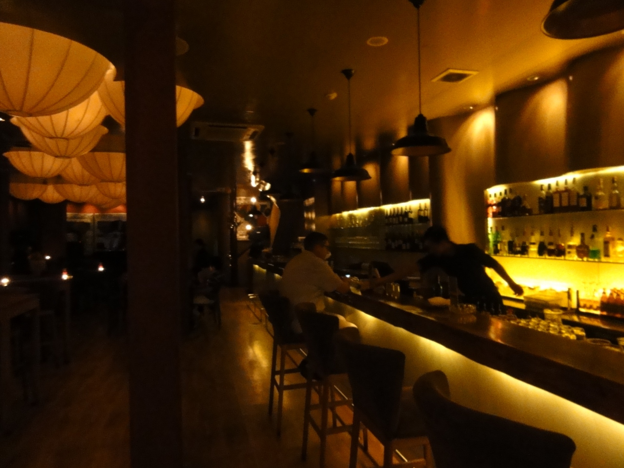 周り近所には怪しげなビヤホイのあるので、1階の通りの入り口は高級なナイトクラブのような雰囲気ですが、中に入ると、非常にスタイリッシュな大人のバーラウンジになっていて、カップルや女性同士での利用客もいました。バーカウンターの前を通り抜けて階段で2階に上がると、ライトのトーンを落とした大人のムードいっぱいのスタイリッシュなレストランフロアーになっています。アラカルトもありますが、利用した日が土曜日の夜で、その日のコースメニューはベトナムの新鮮な食材を使った洋風シ−フードでした。食事だけで$60、シャンパン、ワインなどのドリンク飲み放題で$90のメニュ。