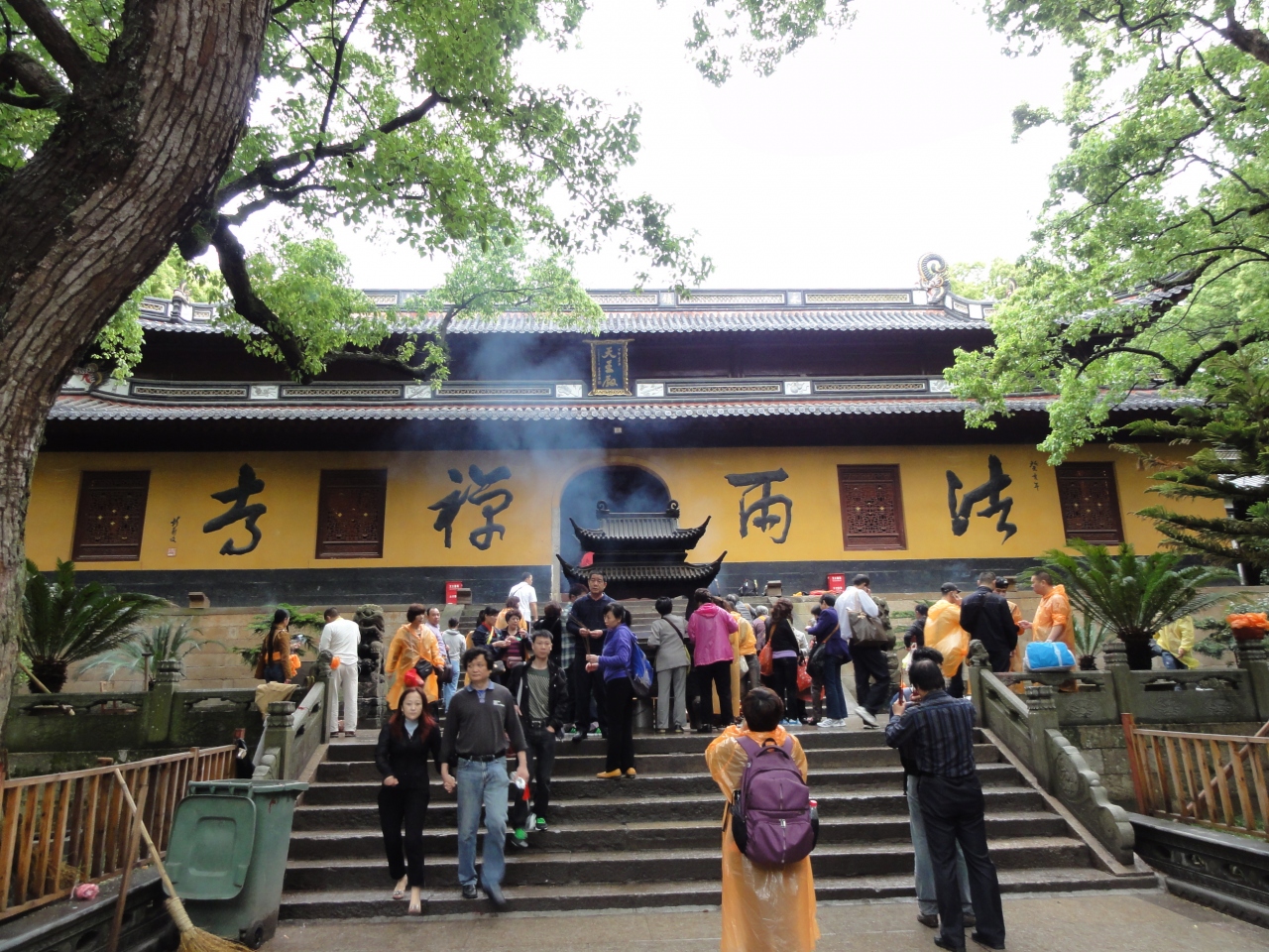 本堂手前にある五重の灯篭は下から上に向かって段々小さくなっていますが、下から順番に「福・禄・壽・喜」の意味があるそうで、その穴めがけてコインを投げる人が大勢いました