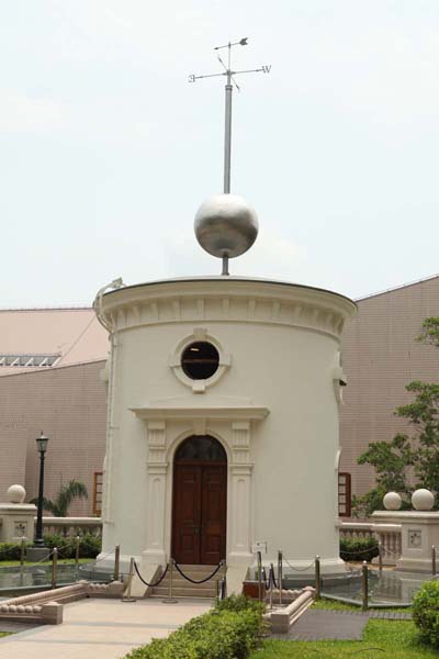 尖沙咀の新名所1881ヘリテージの中でももっとも高い位置にあって目立っている展示物が時間球塔 Round House (Time Ball Tower) です。小さな灯台のような造りで、中に入ると精巧なメカニズムの時計を見ることができます。