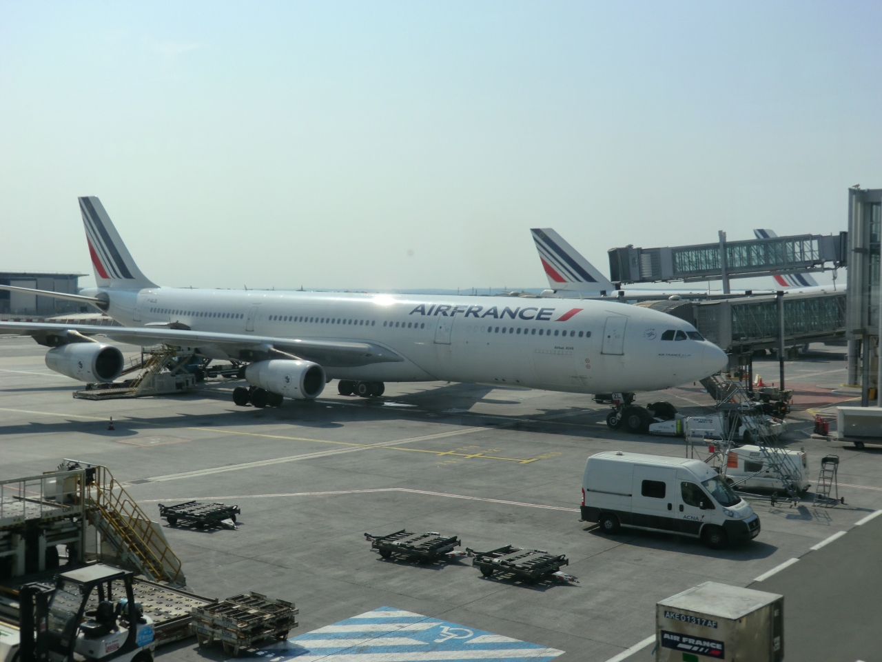 成田からパリ経由でマラガ空港に、30分間荷物を待っていたのですが私も出てきませんでした。係員が出てきてスペイン語で説明をしてくれたのですが、それなら早く言ってくれと。係員の話によると、トランジットの荷物は別のレーンで出てくるとの事、不安な気持ちで待つのは体に良くないです。荷物を受け取り出ようとしたら今度はセキュリティチェックをするのでと荷物をX線検査、何事もなかったけれどこっちはAVANTの出発時刻が押し迫っていて気が気じゃなかった。空港向かいの近郊線の駅に行き切符を買うのに自動券売機だったので、スペイン語を読むのも面倒だし何せ機械を使った事がないので近くにいた警察官に一度も券売機を使った事がないので私の変わりにマラガ駅まで買ってくれと頼み、チケットを2枚買って頂いた。警察さん有り難う。マラガ行のホームだと思っていたら逆のホームで慌てて向かい側のホームに移動。皆さん気をつけて、マラガ行きは改札口を入って左側です。列車を一本やり過ごし、次の列車でRENFE駅まで移動、時間がなあ~~~~い。 到着したのは2時20分、急いで切符売り場に行くとなんと行列が。事情を説明して(2時30分発コルドバ行の列車に乗りたい)だから先に行かせてくれと待っている客に頼み込み、切符売りのおじさんに後6分で出発するけれど大丈夫?と聞くと大丈夫。急いで切符を手にしてホームを聞いて2人でダッシュ、ホームについて一番ホームを聞いて列車に乗り込んで30秒後にドアが閉まり出発です。列車内をスーツケースを引っ張って移動やっと1号車にたどり着いて席に座りしばしの脱力感。皆さん時間に余裕を持って旅行をしましょう。私はある程度のスペイン語が出来るので(30年前にグラナダに住んでいました)何とかクリアしましたが空港から駅まで余裕を持って2時間と考えていた方がベストです。こんな事があったので空港と駅の写真は写せなかった。代わりにエールフランスのウエルカムドリンクのシャンパンと機内食、シャルルドゴール空港2Dの待合室63番スポット周辺とエアヨーロッパの機体です。