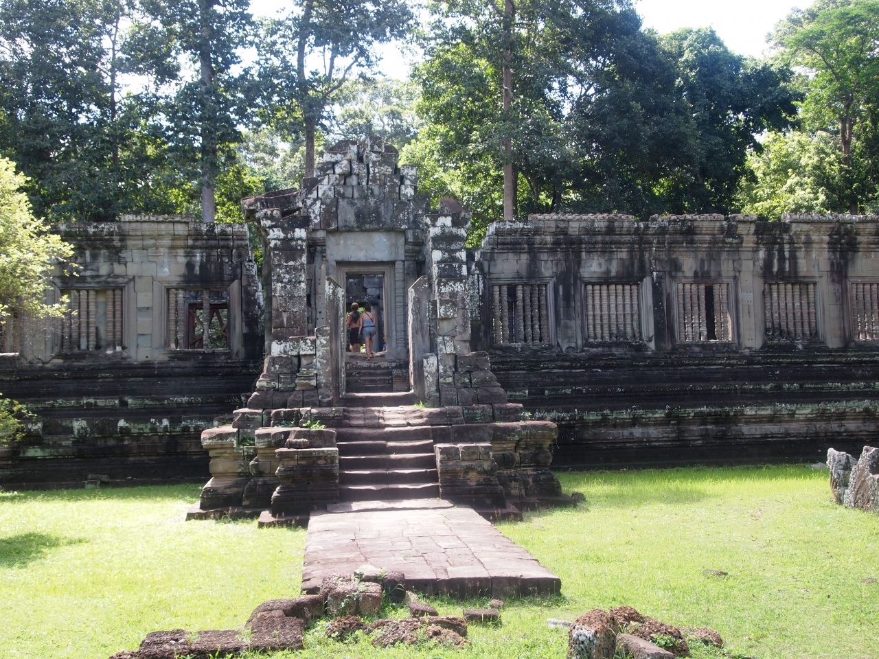 アンコール・トムの象のテラス前の広場を隔ててプラサット・スゥル・プラットの塔群があり、その陰に隠れるようにひっそりと建っています。勝利の門へ至る道を挟んで南北にあって、訪れる人もまばらです。僧院なのか何か儀式を行う場だったのか使途は不明で、屋根は殆ど落ちて壁のみになっています。