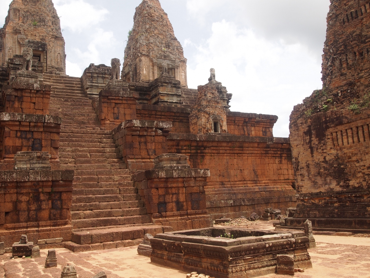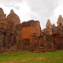 ラテライト製の基壇の上に祠堂を載せた堂々とした姿の遺跡です。階段の昇降はそれほど怖くはありません。祠堂の壁にはラクシュミーなどのレリーフがありますが風化のせいか時間の経過を感じさせます。基壇上からの眺めは素晴らしく、雄大です。