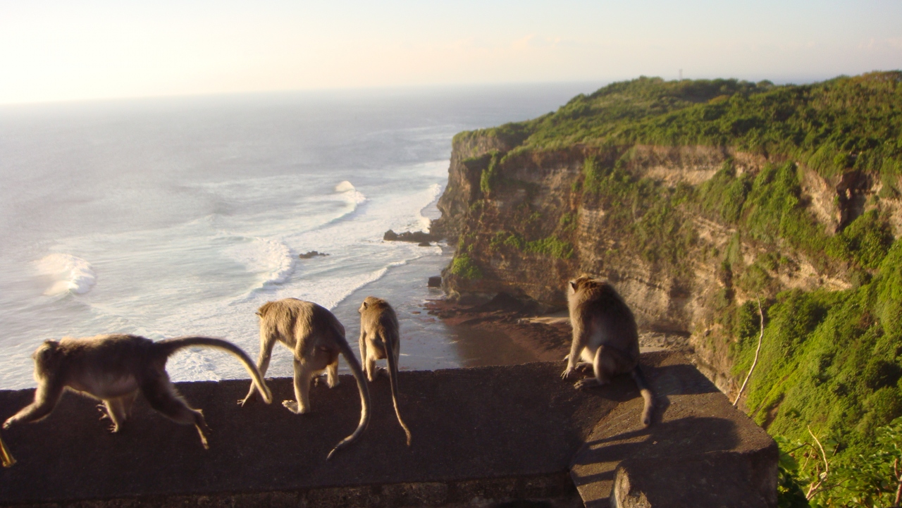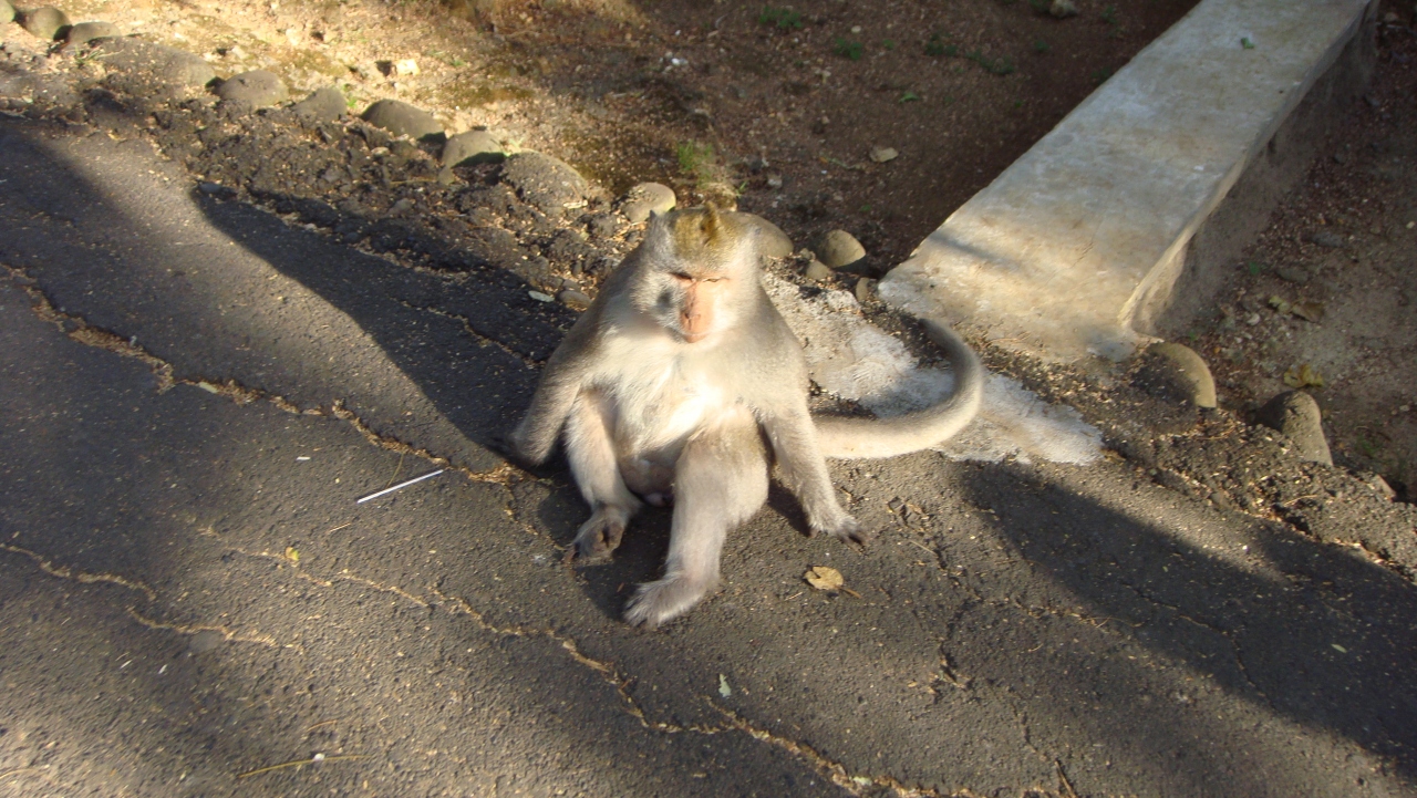 寺院内には野生の猿がたくさんいて、一瞬の隙に物を盗むので