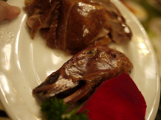 ツアーで利用しましたので北京ダックは期待していなかったのですが他のお料理も豊富で肝心の北京ダックの量もたくさんあって大満足でした、ダックは身もついていましたが臭みもなく柔らかくてとても美味しかったです、杏仁豆腐も進められましたが注文したかたの意見では「どこにでもある杏仁豆腐」との事でした。