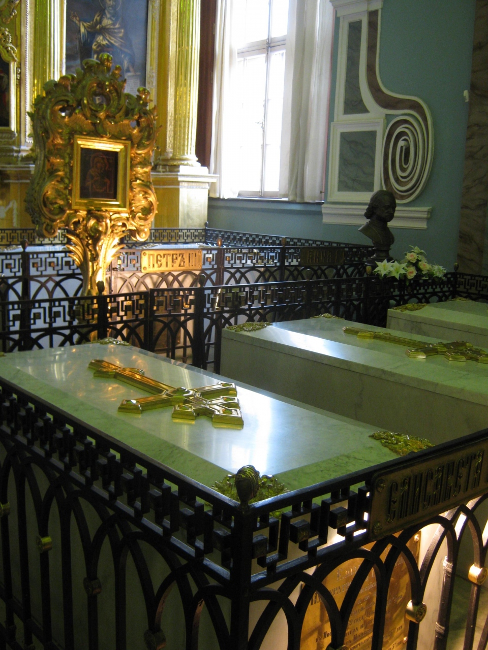 - ペトロパブロフスク聖堂内にはロマノフ王朝歴代の皇帝の墓石があります。