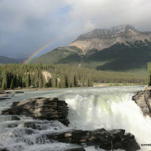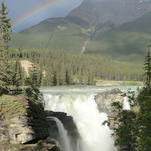 バンフ方面からアイスフィールド・パークウェイにてジャスパーに向かうと、ジャスパーのすぐ手前、#93Aとの分岐点近くにある。駐車場からすぐ近く。この近くにはサンワプタ滝という別の滝が見られるが、こちらの方がより絵になる。遊歩道が滝の周辺に張り巡らされており、いろんな角度から見ることが出来るのだが、行ったときにはいくつのも虹を見ることができた。