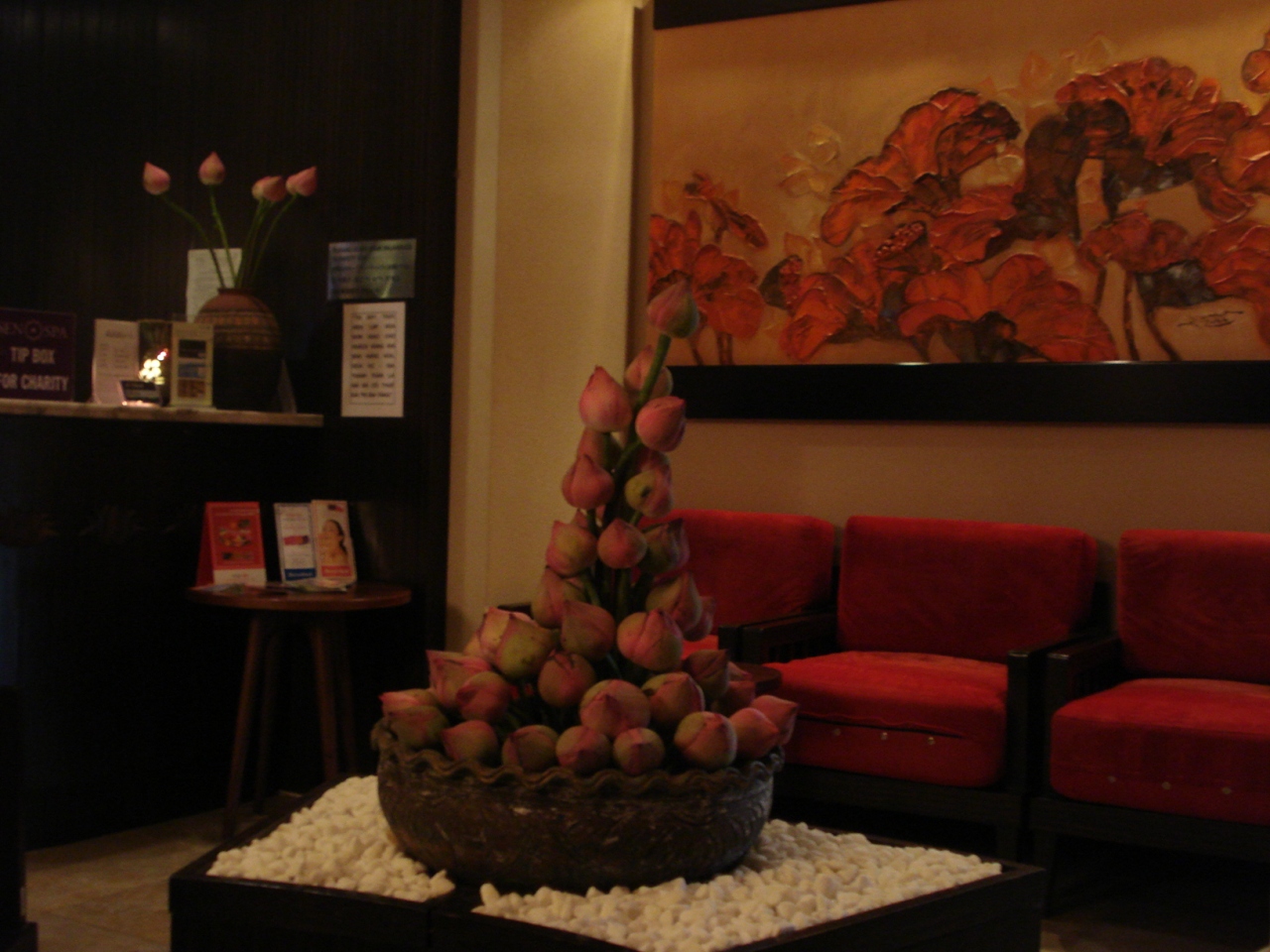 センスパのモチーフであるハスの造花が飾られた店内は落ち着いた雰囲気で素敵でした。