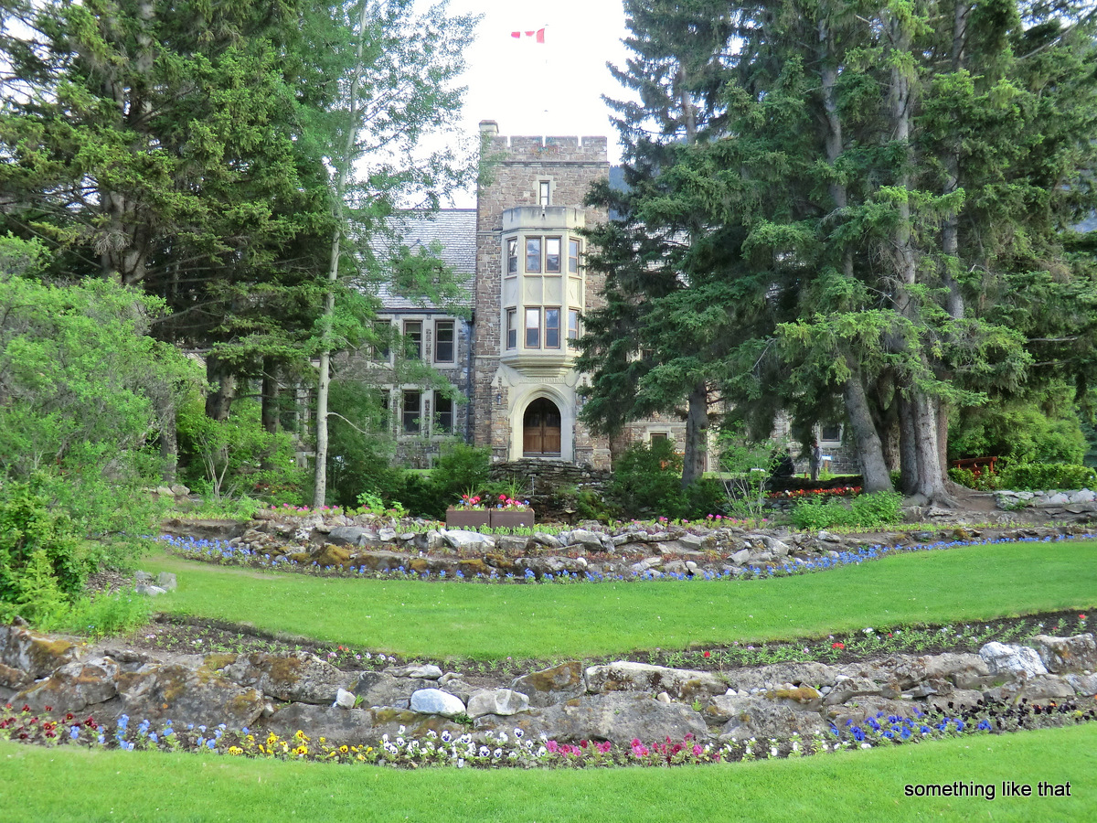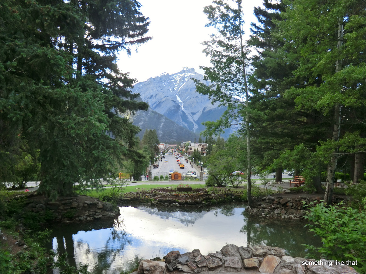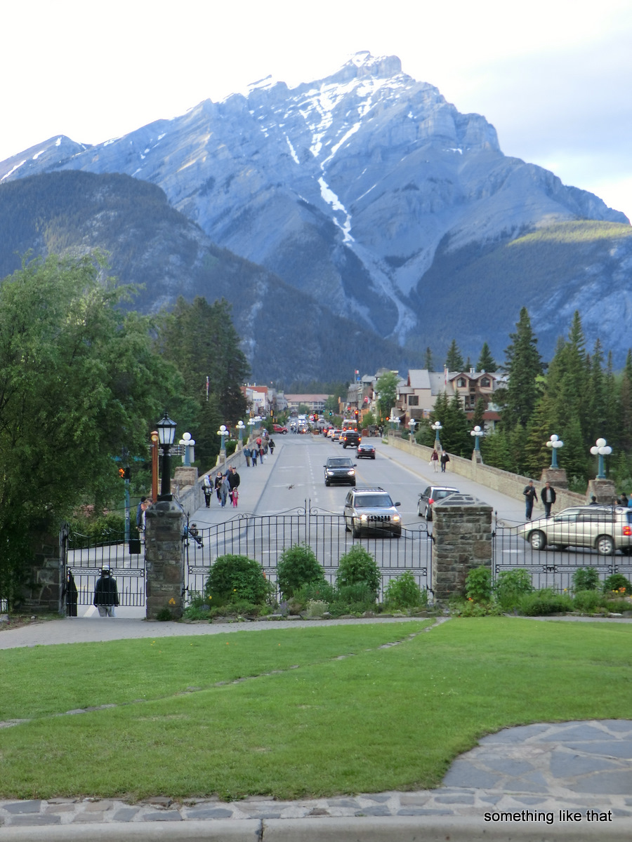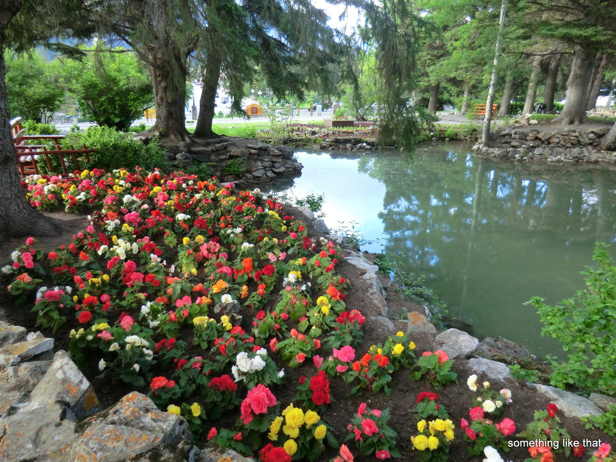 バンフの街からボウ川にかかる橋を渡ったところにある公園管理事務所がある敷地は、綺麗に整備され色とりどりの花が植えられている。街の中心、といってもメインの道の両脇にレストランや土産物が数百mぐらい軒を連ねているところから歩いていける。ここやバンフ公園博物館周りの芝生は買い物で疲れて休憩するのにベスト。