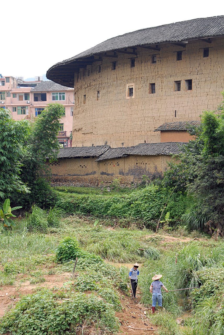 土楼は通常、関係者以外は入楼出来ない。大きな集合住宅になった建物で、円形か四方形を形成ており、180cm以上の厚い土壁と木材骨格から成り、高さは3階か5階、80家族以上が生活するもの。