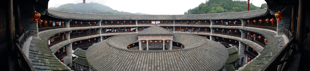 写真に使ったのは、「土楼王子」とも言われる、永定土楼の「振成楼(4階建て)」(パノラマの分)です。