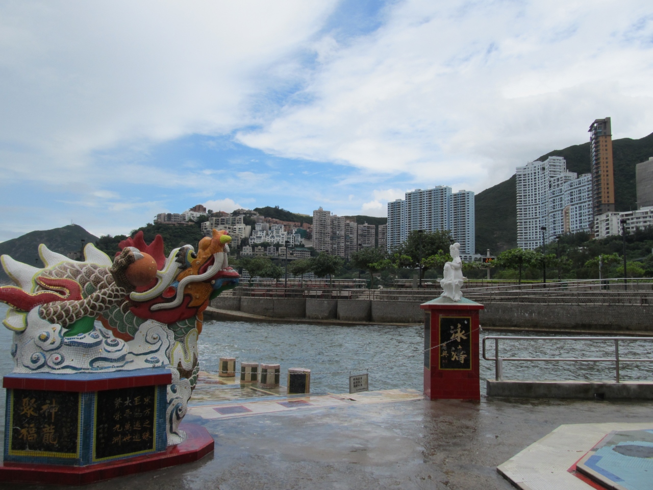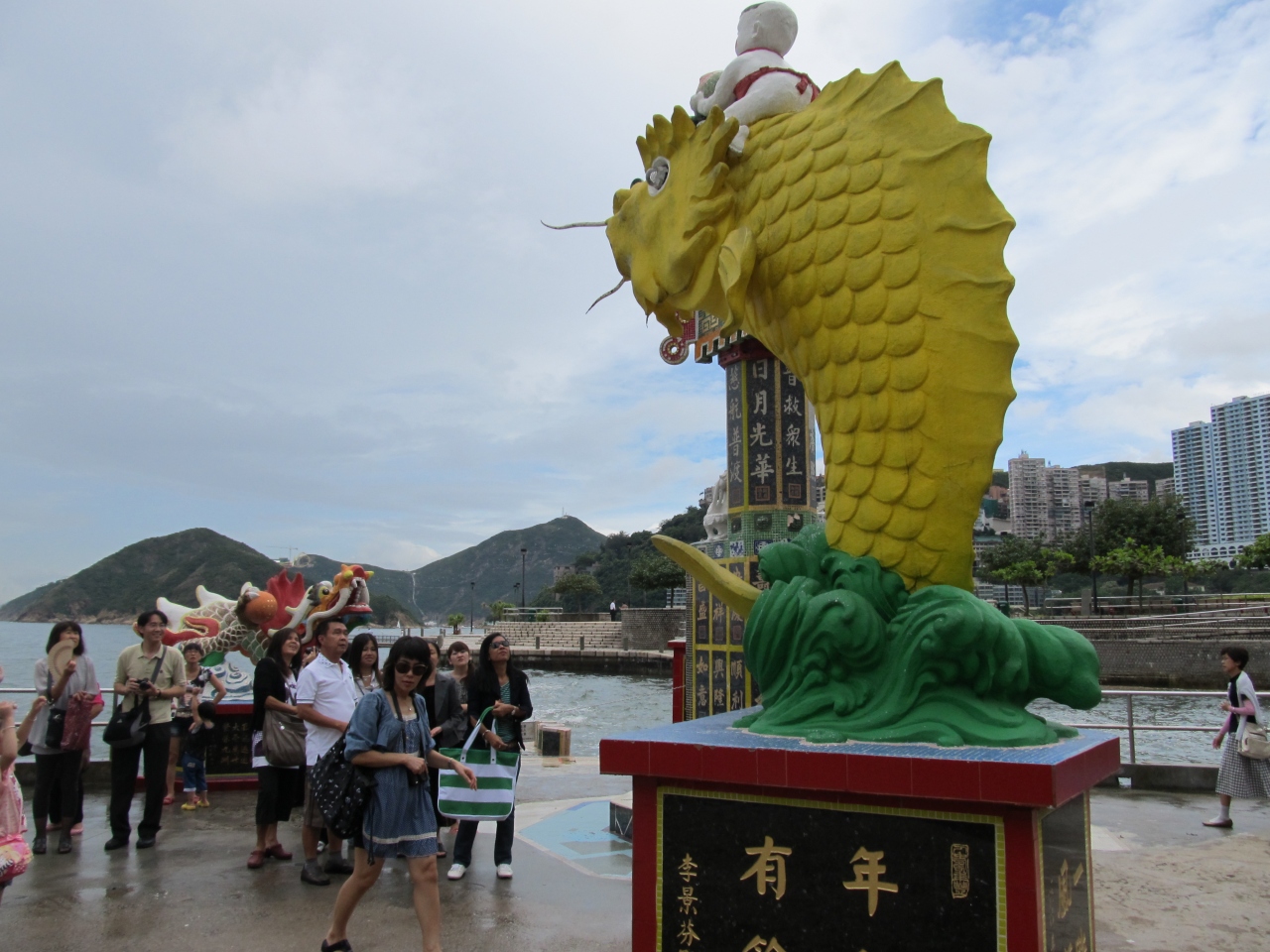 ビーチには似つかわしくない中国風な像が沢山ならんでいて