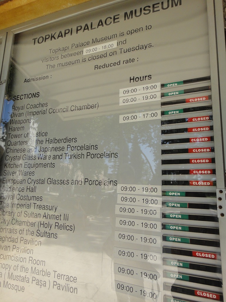 ・入場は9:00~7:00、火曜休み。ハレムはもっと早く閉まる。