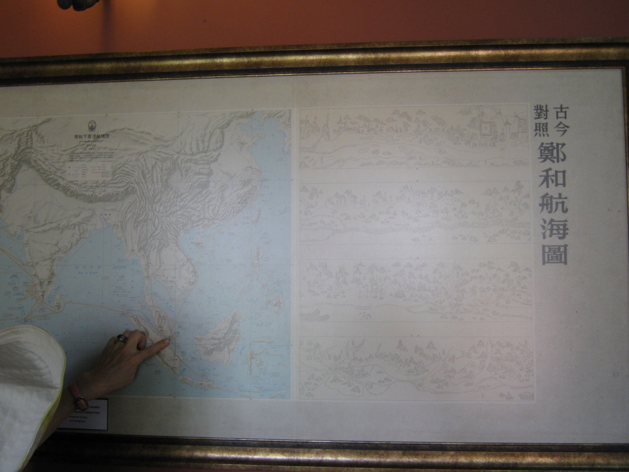 鄭和博物館の中には、鄭和が旅した航海図や、その当時の船団の模型が展示されている。