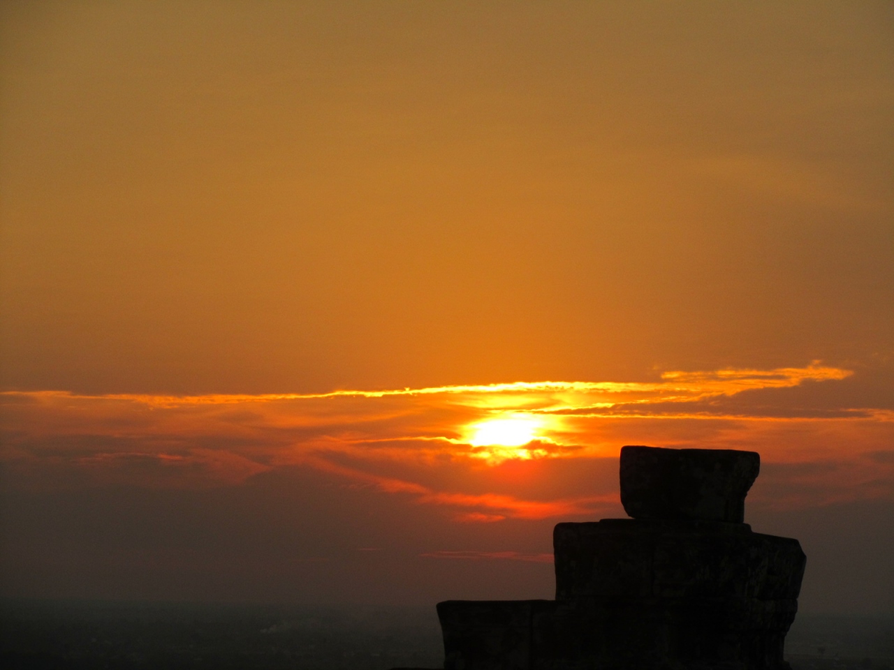 プノン・バケンの夕陽に拍手。