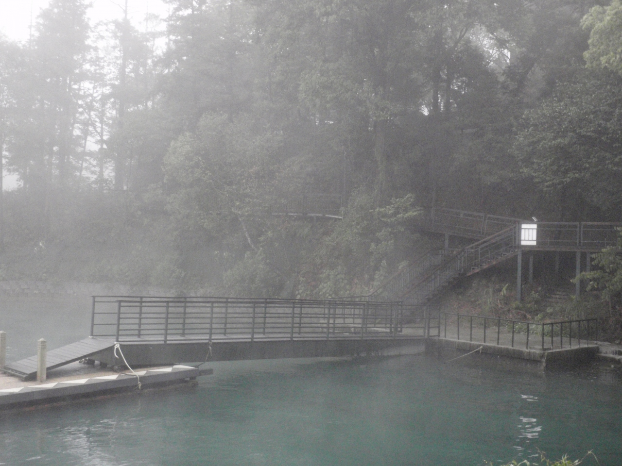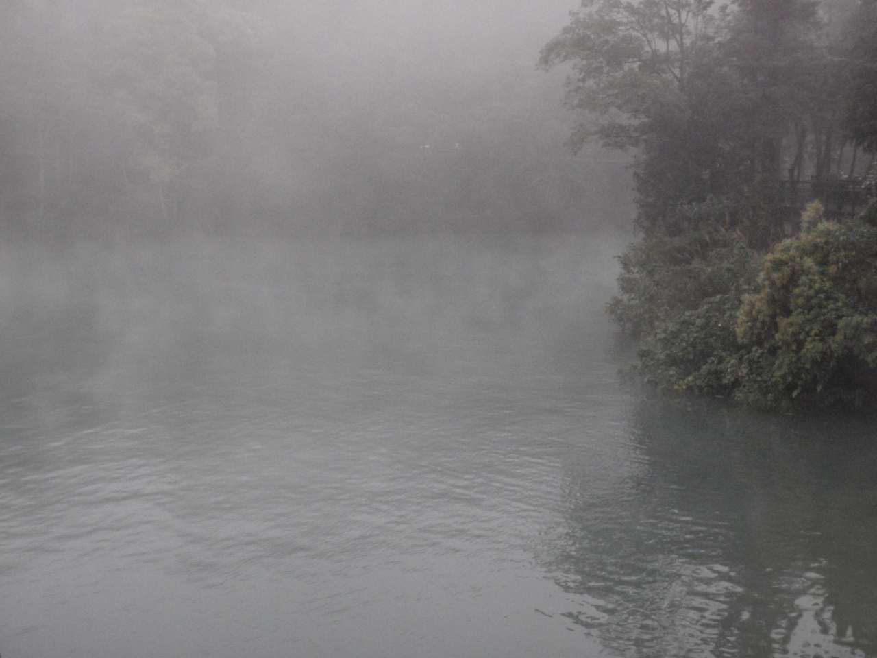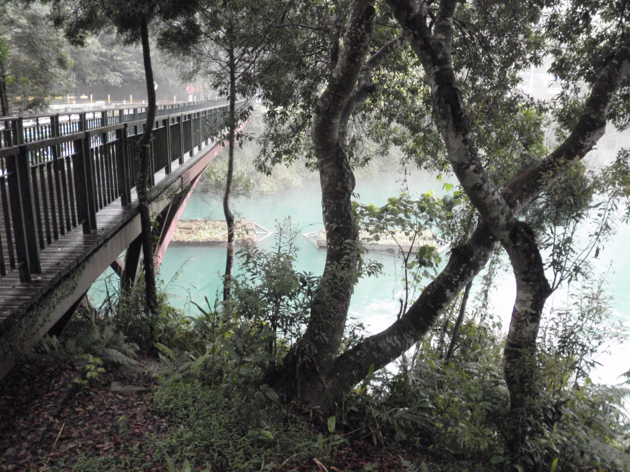 水社碼頭から文武廟にかけての4kmあまりに木材で出来た遊歩道が整備されている。ここは、バイクや自転車乗り入れ禁止の純粋な遊歩道でのんびりと散歩ができる。私が訪れた3月上旬は、天気が良くない日が続き、湖からは水蒸気が上がっていてた。決して見通しがよかったとは言えなかったが、湖畔の散歩を楽しむことができた。