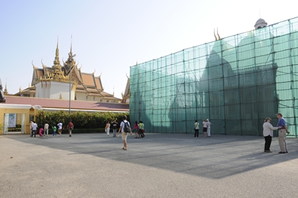 - プノンペン観光の見所になっているので、大型バスが着くと即位殿あたりは混み合います。