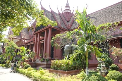 クメール様式の赤い建物が印象的な国立博物館
