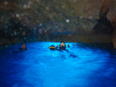 珍しい魚などはあまりいないので、地形派ダイバー向け? 水面のうねりはありますが、水中は流れも少なく技術的にはビギナーでもエントリーできそうです。ただ、エグジットは波に足をすくわれそうなのでご注意を。青の洞窟として観賞するにはとてもきれいかと思います。