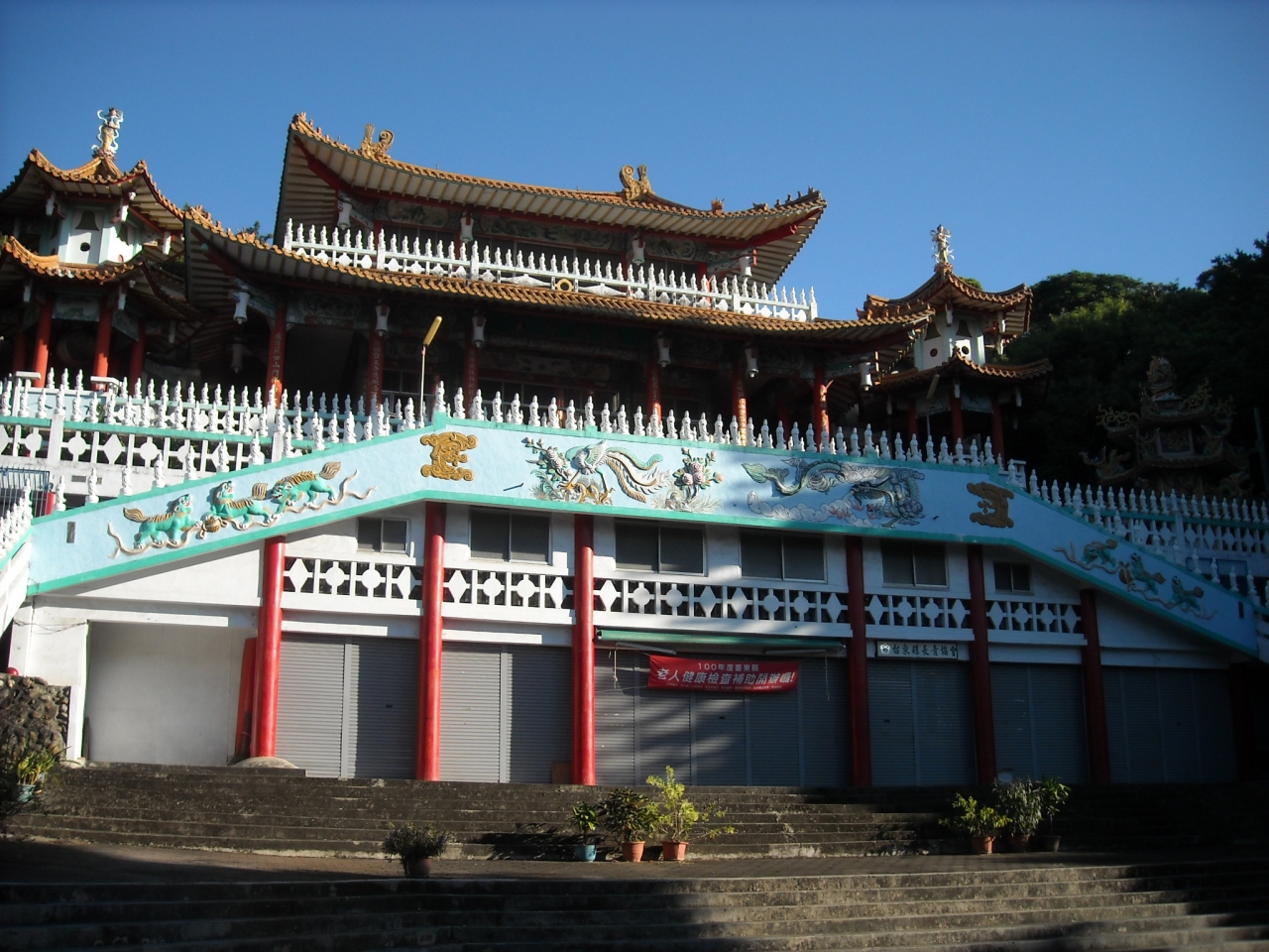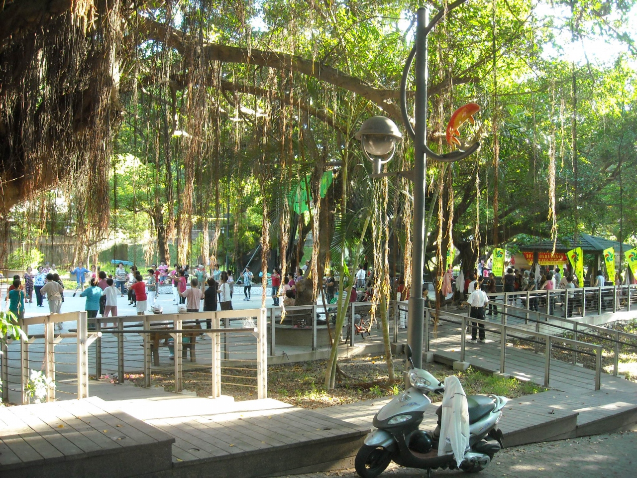 鯉魚山公園の朝は、野菜・果物を売っている朝市や、朝の体操をしている人で賑わってます。果物を買って食べるのもよいと思います。また、青空カラオケもしている人もイました。公園内には、忠烈祠や龍鳳寺があります。ここには、昔は神社があったそうです。