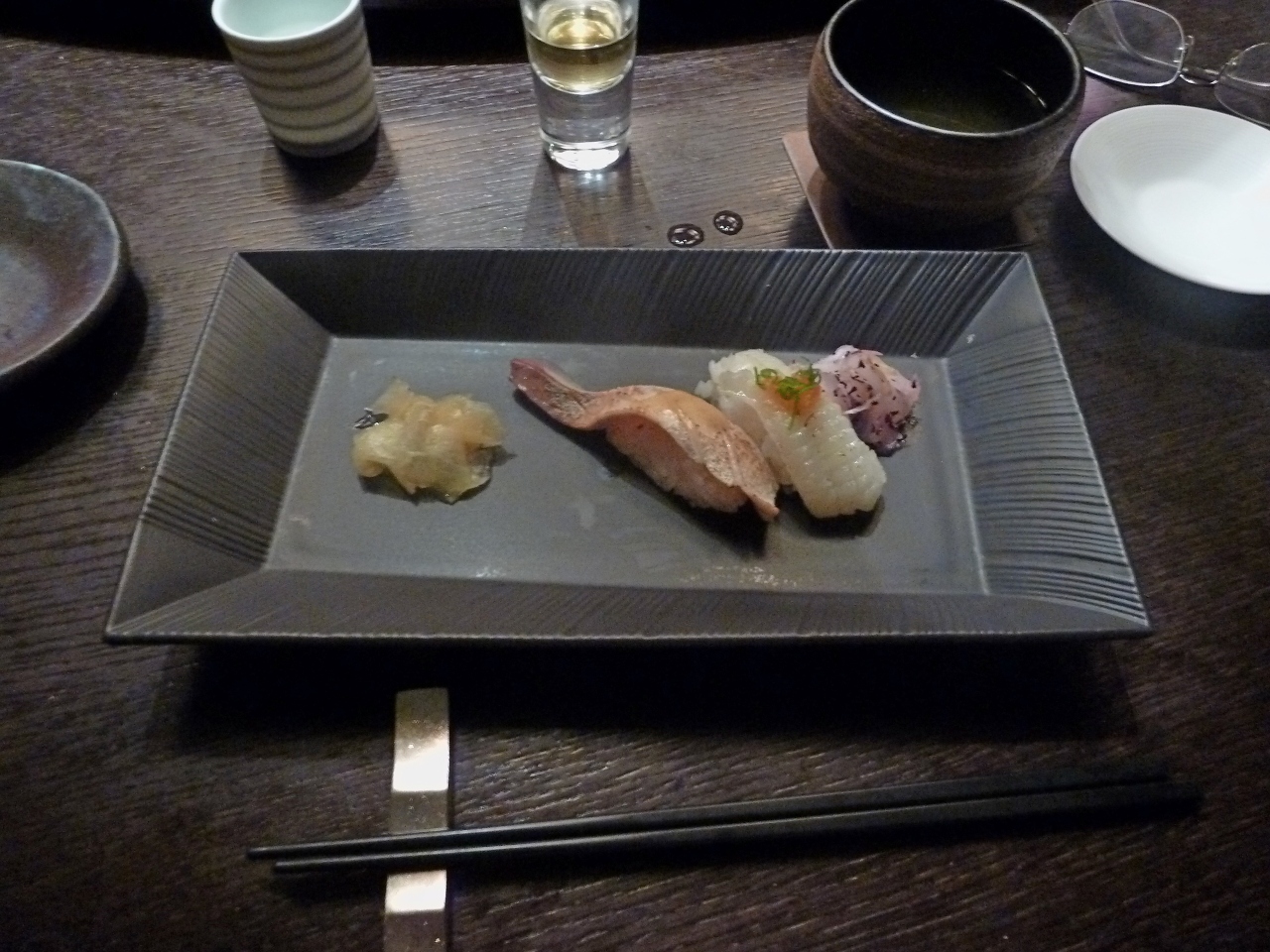 三井本店ではなく敦化南路一段108號B1の三井料理美術館で食事.3200元の食事で,そこそこおいしかったが,刺身と鮨以外は,本物の和食とは微妙に違う.朴葉焼きは味噌が少なかった.酒は新潟の酒オンリー.しゃれた名刺は「料理美術館」にふさわしい.美術館とは大仰だが,それなりにきれいにつくられていた.高級日式料理(台湾の人たちの日本料理)を食べられる店.しかし本物の和食とは異なる.
