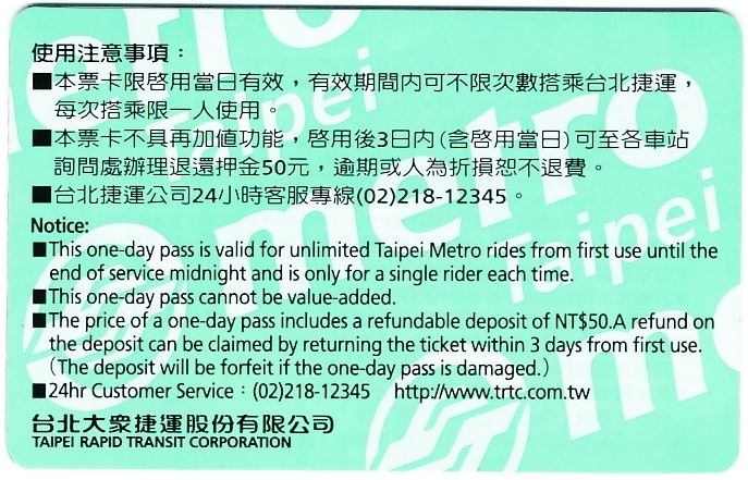 本当はTaipei Passを買いたかった(バスなどにも乗れるので)が中山站では売っていない.やはりTaipei Passは松山機場站などでなければ買えないのだろう.MRT一日乗車券は200元,Taipei Passより20元割高でかつバスにも使えないが,どこのMRT站でも買えるようだし,やはりいちいち切符(ジュトン)を買わなくていいので便利ではある.Taipei Passが無ければ次善の策としてこれを買えばよい
