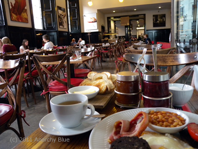 朝食は量たっぷり。トーストされたイギリスパンがおいしいです。