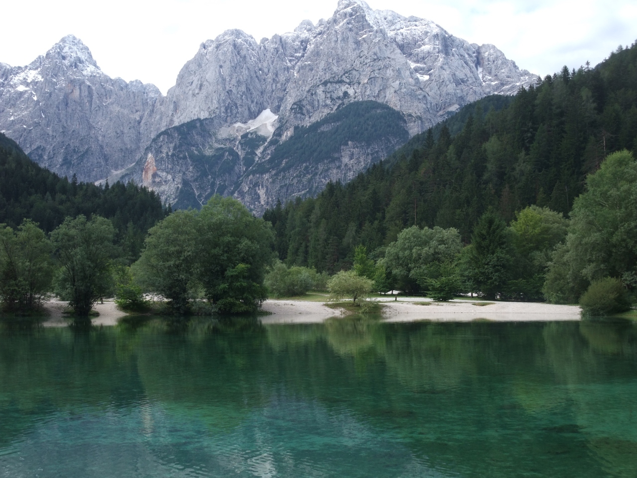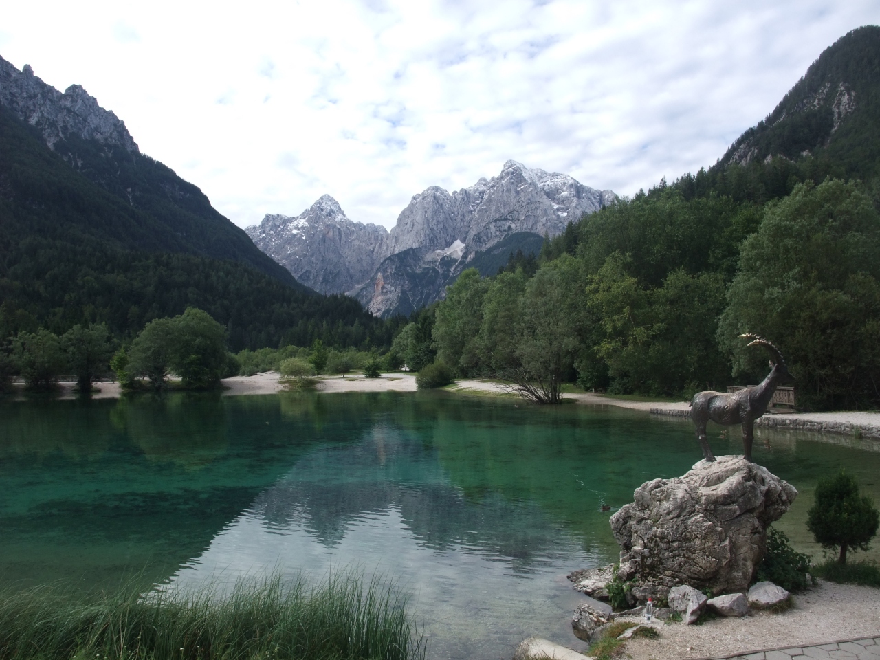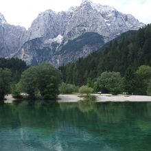 クランスカ・ゴラの町から30分程歩くとヤスナ湖に着く。静かな湖面にユリアンアルプスが映り、素晴らしい景観が楽しめる。静かな環境のなかで、山を見ながら湖の周囲を散策すると気持ちが晴れ晴れとしてくる素敵な場所だ。