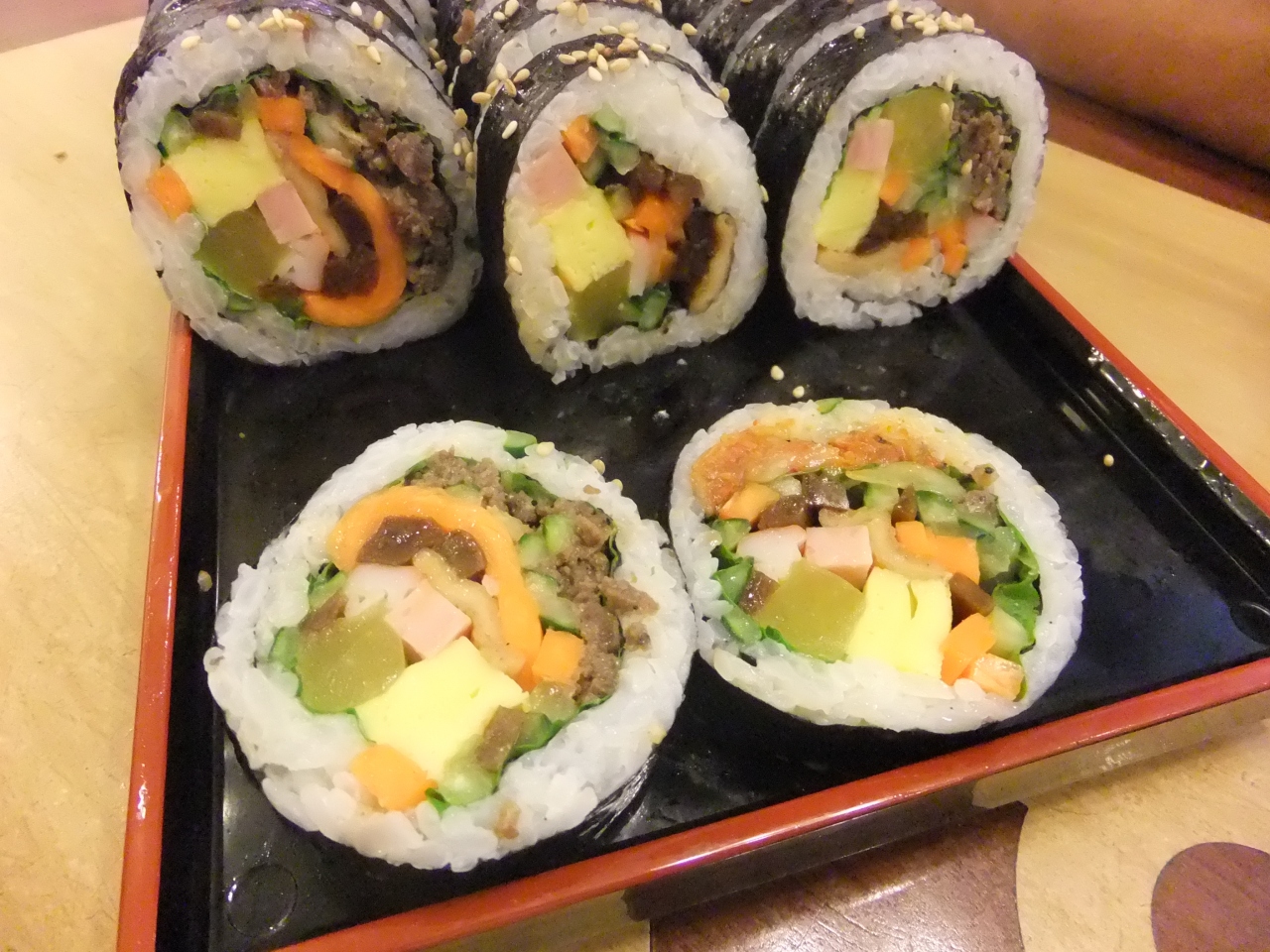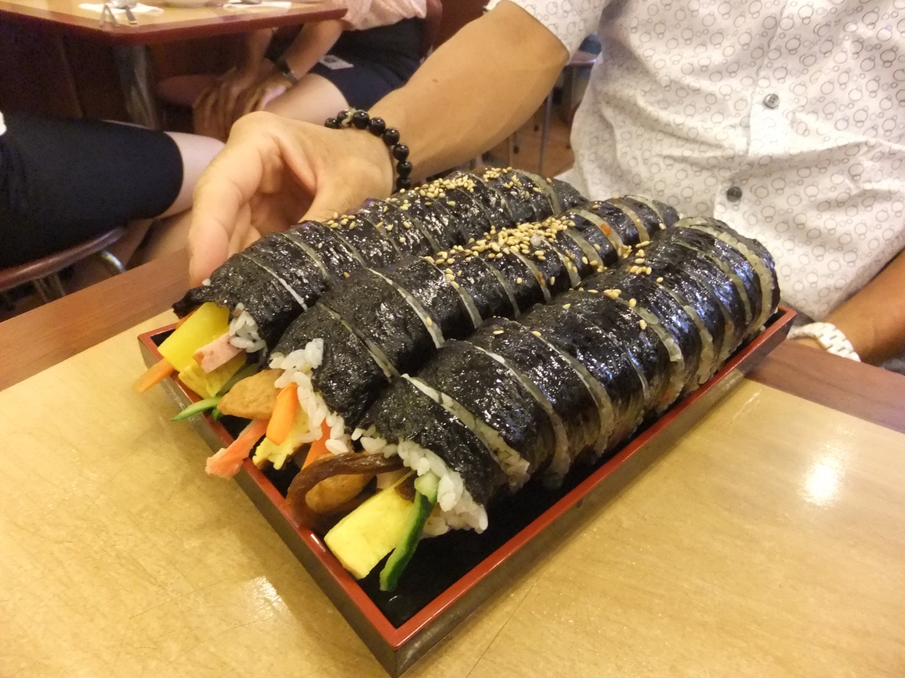 キンパ2本を3人で注文すると、メニュー裏の日本語注意書きで「ひとり1品は注文してください」みたいな事を言われました(韓国語で)