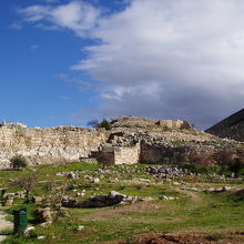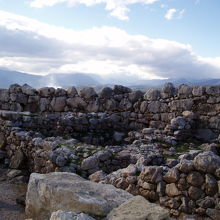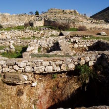 古代ミケーネは巨石を積み上げた城壁に囲まれていました。その入口「獅子の門」を入ると、右手に見えます。この内部には6つの竪穴式墳墓があり、19の遺体と共に黄金のマスクをはじめ、多くの副葬品が発見されました。ここで出土した財宝の数々はアテネの国立考古学博物館で見ることができます。