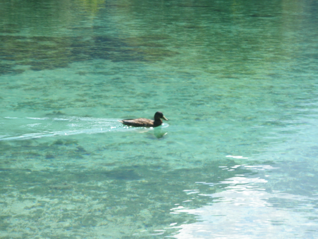 澄んだ水の中にはお魚が泳ぎ、カモサンたちも優雅に浮かんでいて、湖畔でのんびり寛げます。