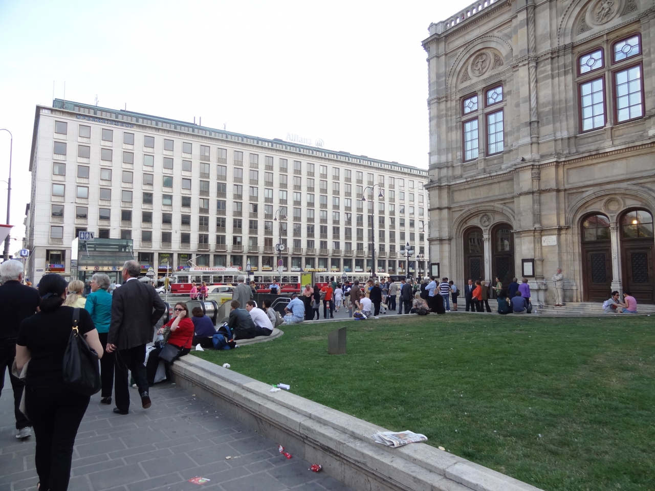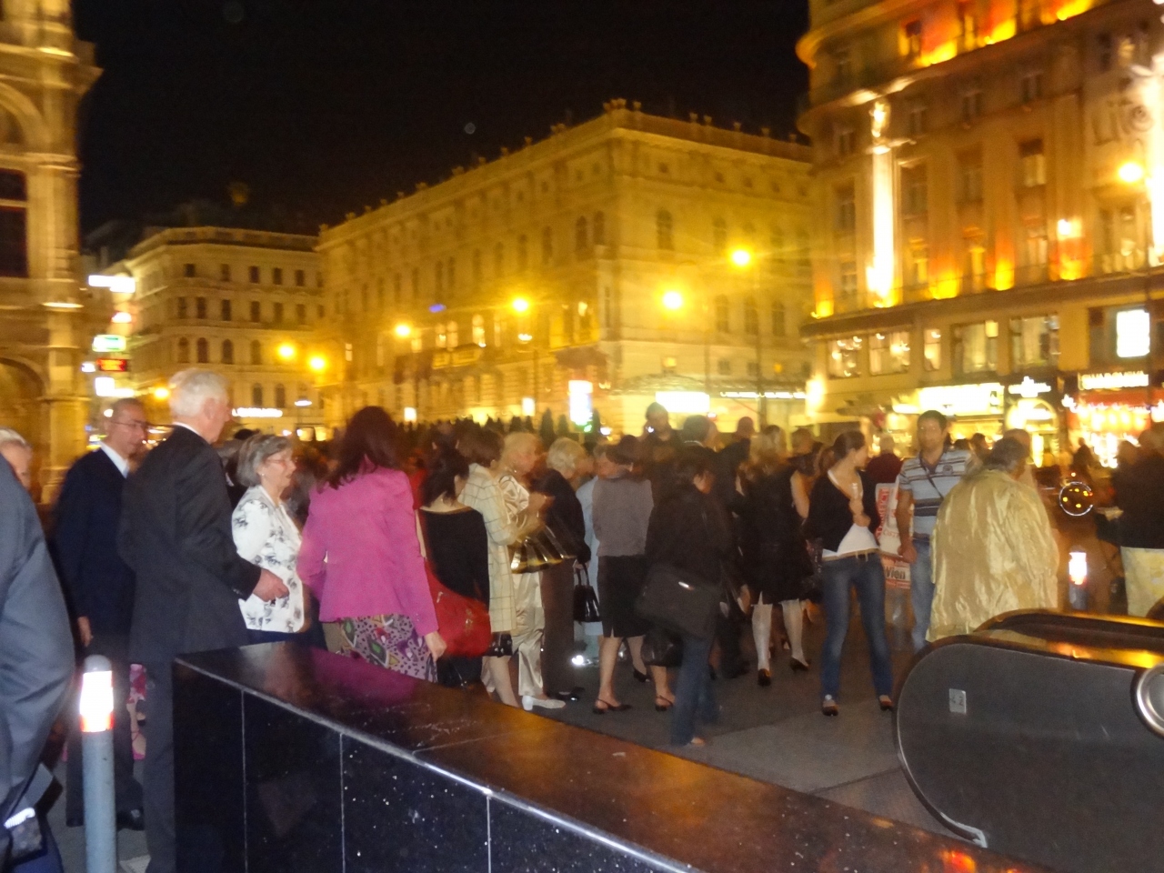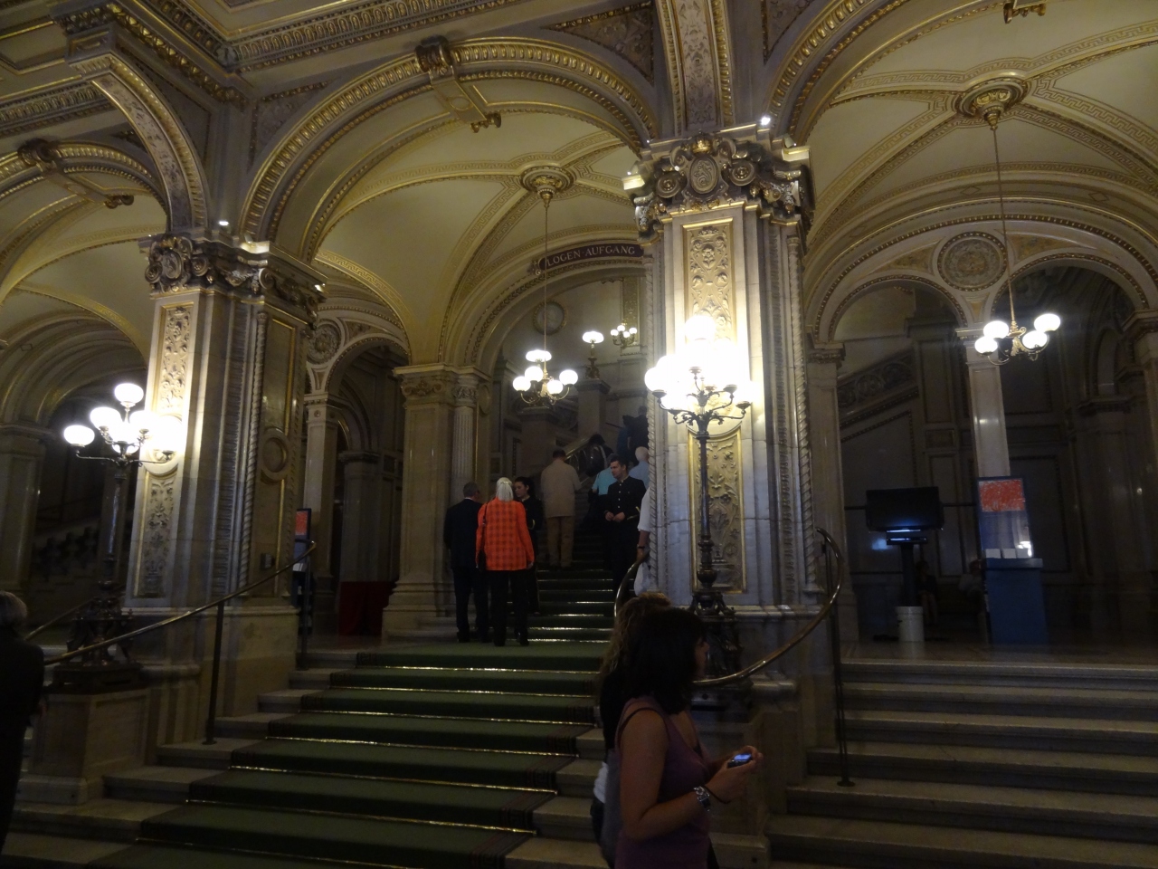 国立歌劇場は観光客の比率が高いようです。 これに比べフォルクスオーパのほうが地元の人が多いようでした。 参考までに、フォルクスオーパの服装もチェックしてください、国立歌劇場より飾った人が多いと感じました。
