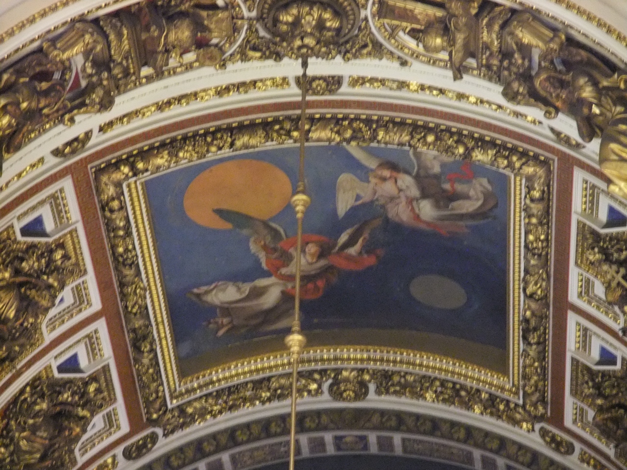 外観はロシア建築の特徴のタマネギ頭。内部は天井に至るまで絵画が施された芸術品です。豪華なシャンデリア、壁・天井の絵画、細かなところまで装飾が施されています。館内はそれほど広くありませんが、観光客が多いので混み合っていることが多いようです。